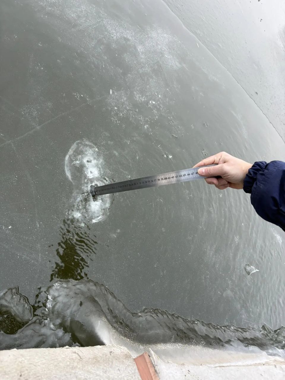 Сегодня спасатели зафиксировали толщину льда в 1 см на водоёме у Храма Святого Владимира и 2 см на Лебедином озере.