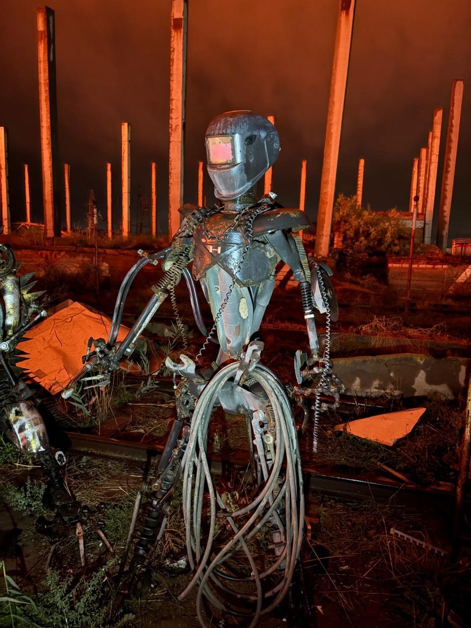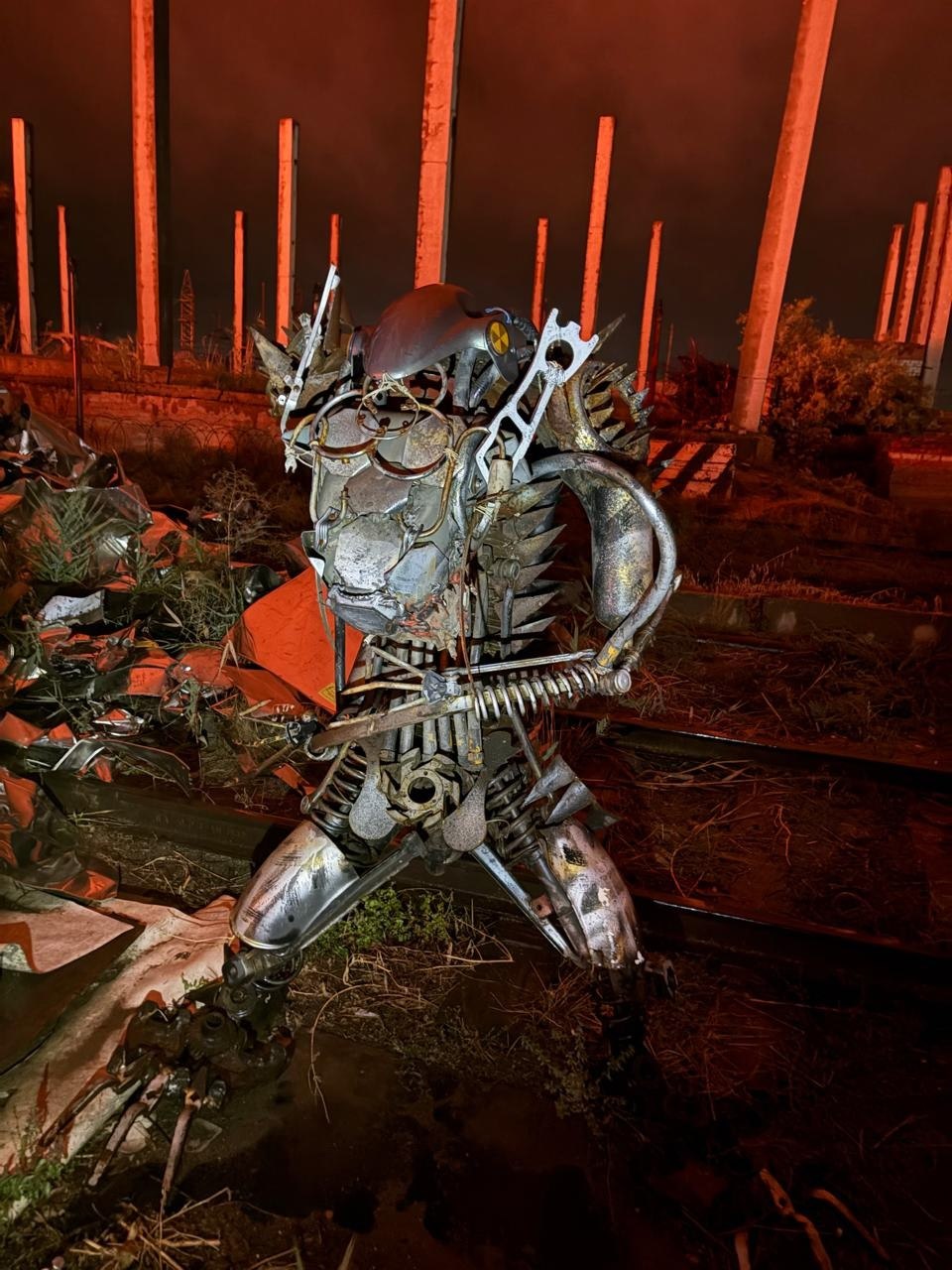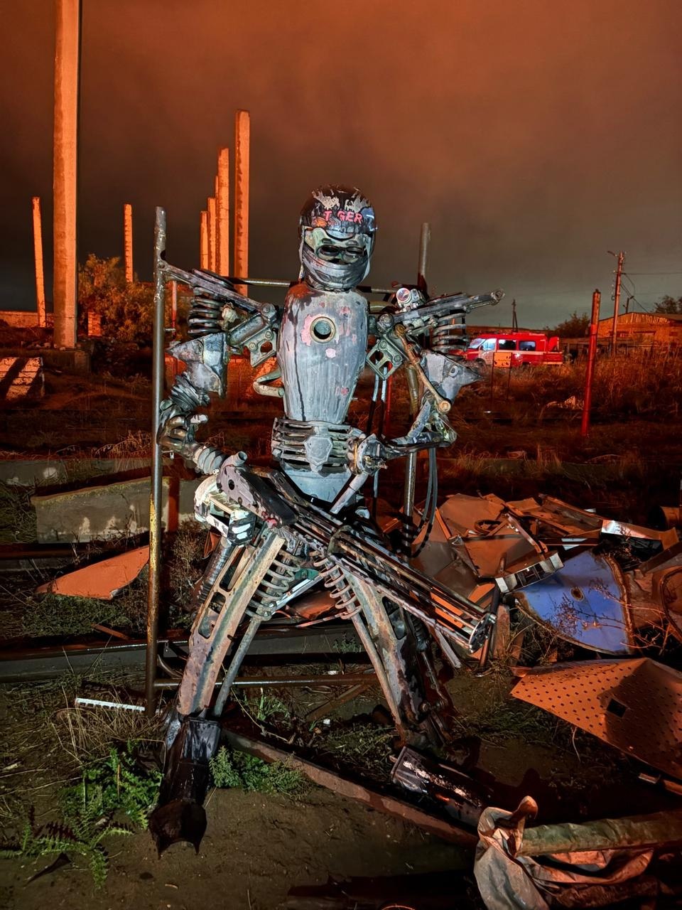 Сотрудники центра помогали огнеборцам вскрывать двери складских помещений. В одном из ангаров спасатели обнаружили необычные арт-объекты — фигуры, собранные из металлических деталей и напоминающие «терминаторов».