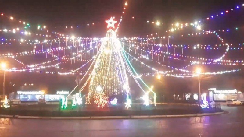 Огни на ёлке в правобережье, состоящей из 450 живых деревьев, зажглись на минувших выходных. В городской администрации рассказали, что 14-метровую красавицу собирали несколько дней.