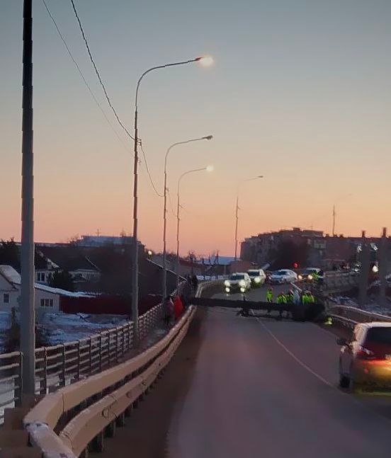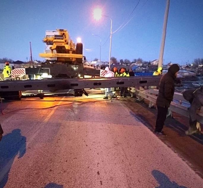 «На данный момент ведутся работы по поднятию крана и возобновлению движения автотранспорта через мост. Авария будет устранена в течение полутора часов», - говорится в сообщении.