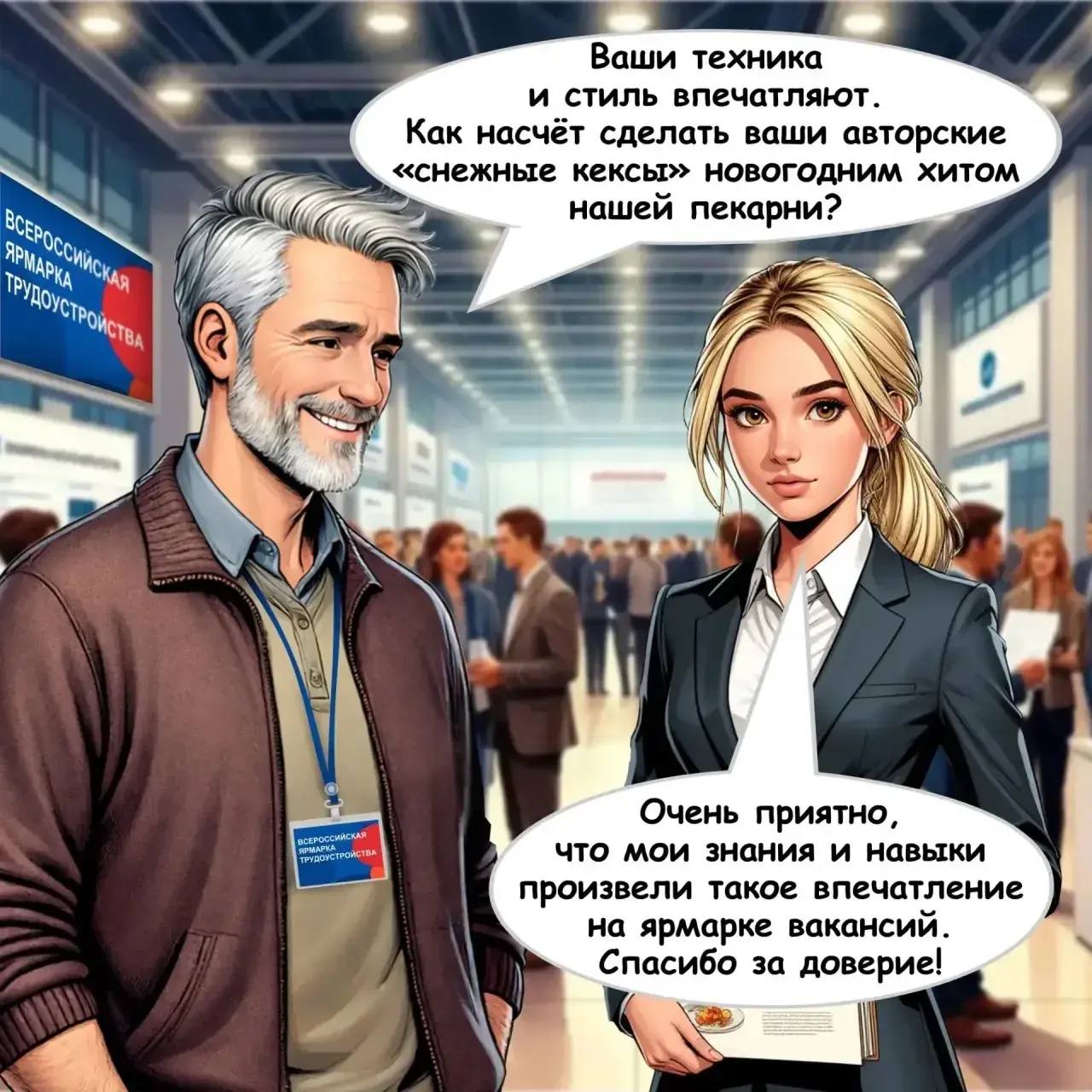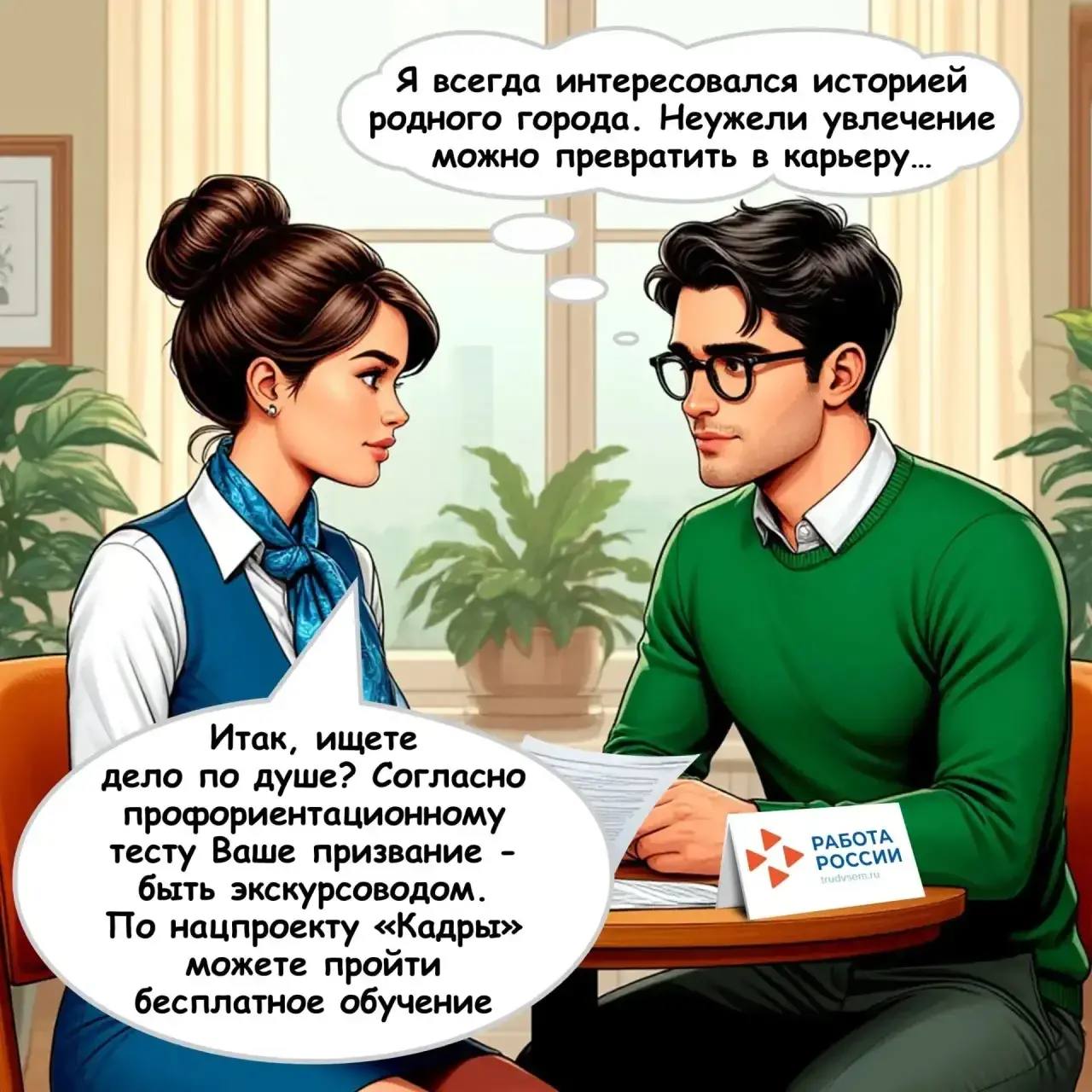 В сегодняшнем комиксе мы решили рассказать вам истории двух молодых людей, которые благодаря нацпроекту получили возможность сменить сферу деятельности или сразу после обучения начать работу по профессии.
