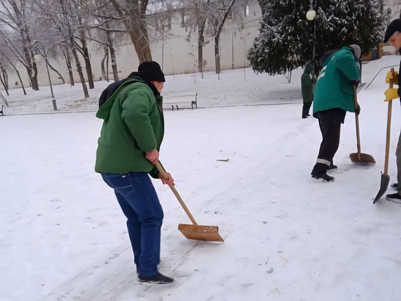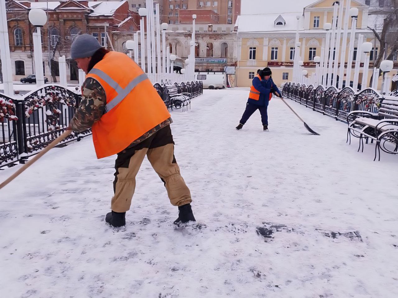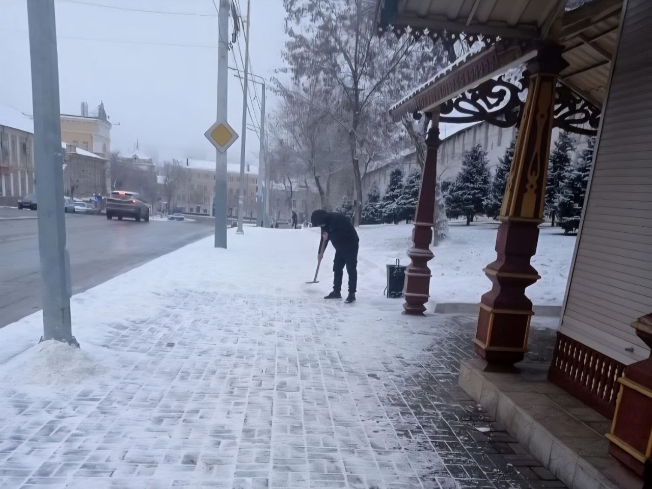 В Астрахани обрабатывают противогололедной смесью дороги и общественные пространства