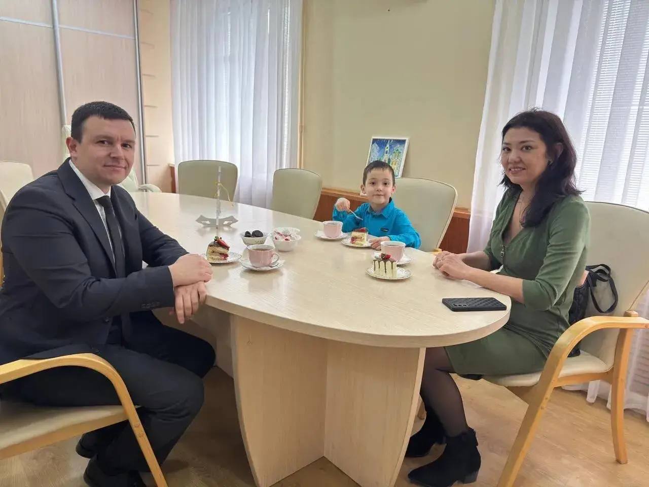 Глава ведомства, выбрав на праздничной ёлке шар с желанием Жени, пригласил мальчика и его маму Екатерину в министерство. Там он лично вручил юному астраханцу гироскутер и умную колонку в качестве сюрприза.
