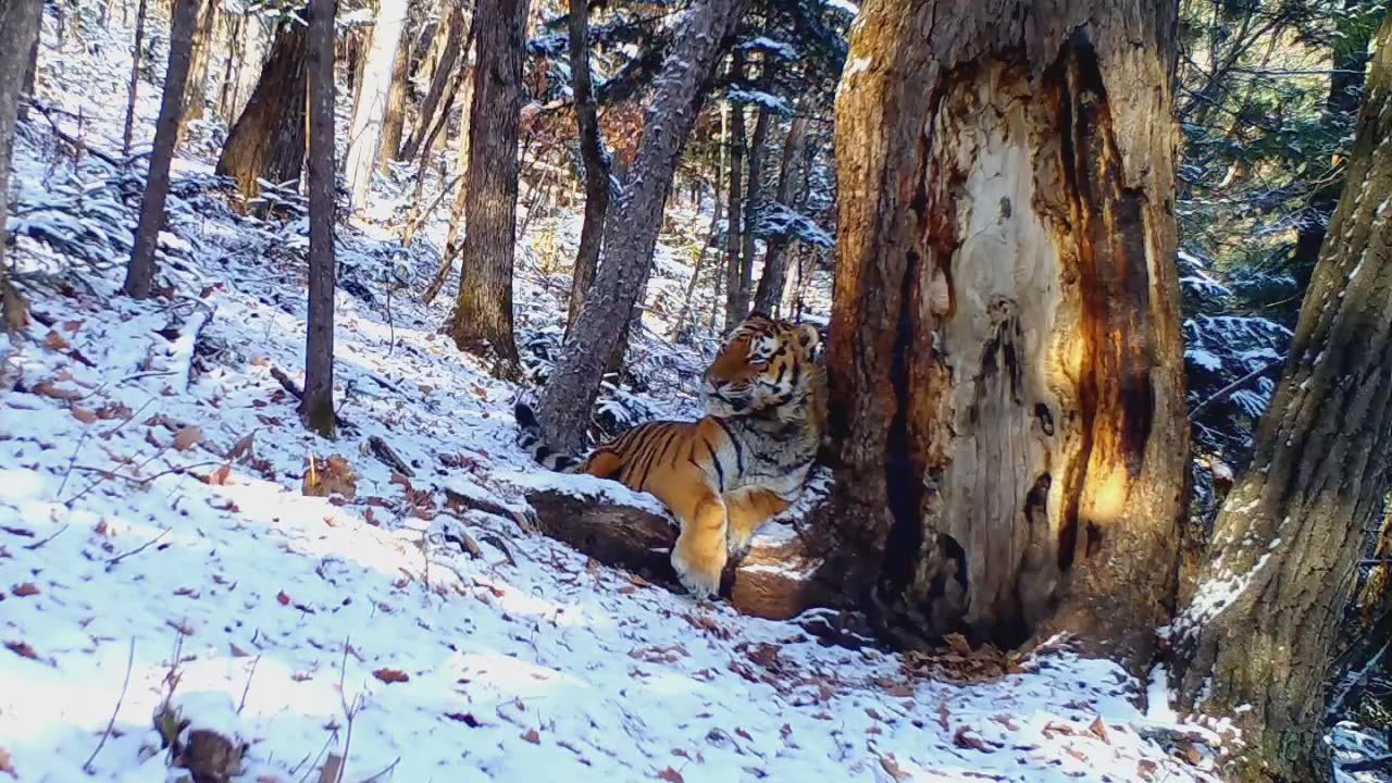 На видео попал самец амурского тигра, который тёрся мордой о редчайшую пихту. Предположительно яркий аромат дерева в сочетании с запахами других животных вызвали у большого кота состояние, близкое к эйфории, что говорит о комфортном состоянии животного.