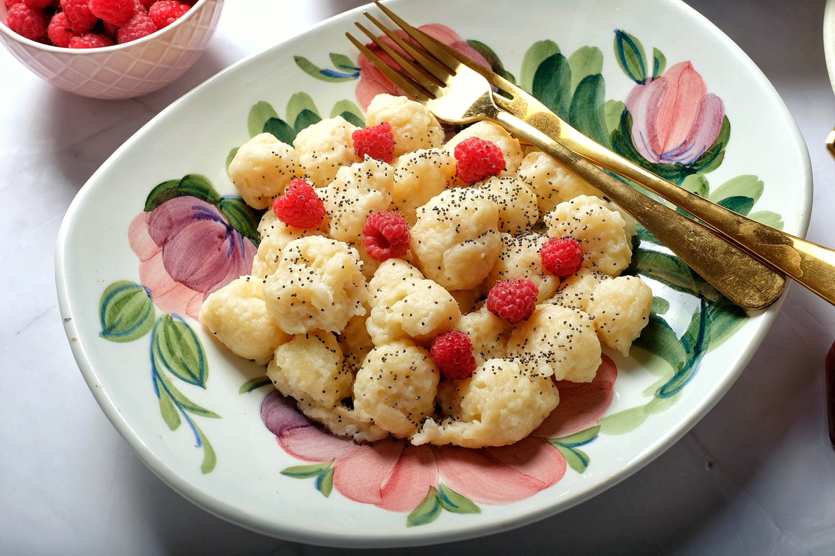 Ленивые вареники подаются с любимыми дополнениями: сметаной, сливочным маслом, вареньем или свежими ягодами. Для любителей текстуры, можно посыпать маком. Это блюдо сочетает в себе простоту и невероятный вкус, что делает его отличным выбором для всей семьи.