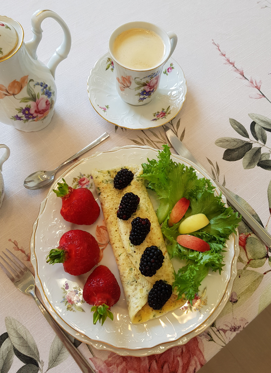 Для настоящего удовольствия можно добавить к омлету яркие нотки, сочетая его с клубникой, ежевикой и нектарином, а также подать с зелеными листьями салата — так вкус станет ещё более пикантным и свежим. Наслаждайтесь неповторимым вкусом и интересным сочетанием ингредиентов!