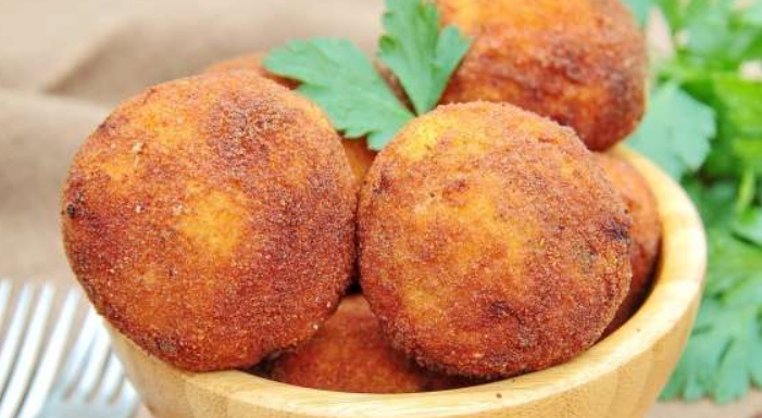 Сформируйте небольшие шарики одинакового размера, обваляйте их сначала в муке, затем в взбитом яйце и, наконец, в сухарях для панировки. Обжарьте фрикадельки во фритюре до золотистой корочки и выложите на бумажное полотенце, чтобы избавиться от лишнего масла.