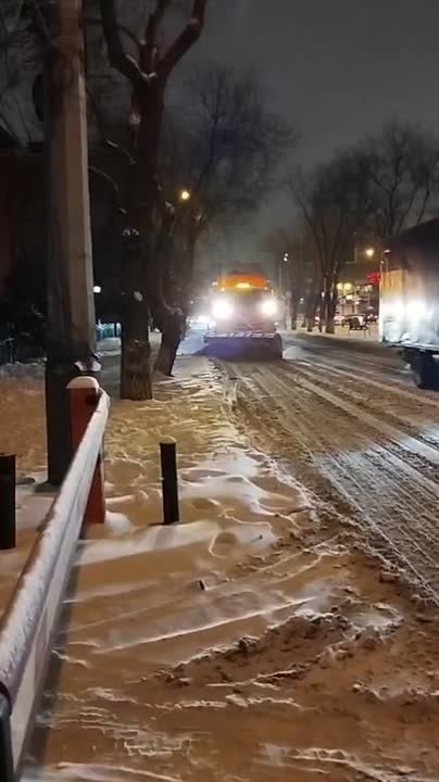 Сейчас уборка продолжается. Комбинированные дорожные машины муниципальных предприятий и привлеченная техника расчищает снег и посыпает улицы противогололедной смесью.