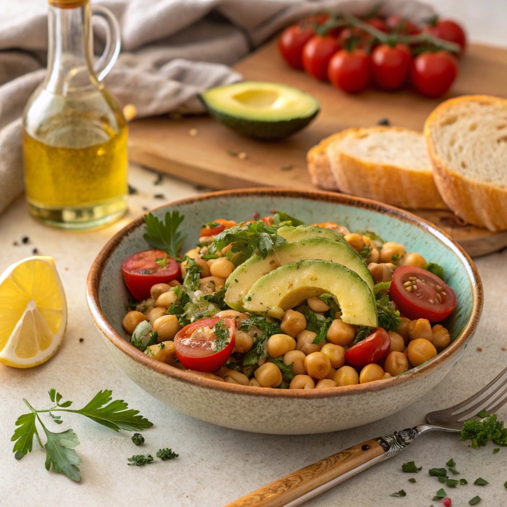 - Салат с нутом и авокадо: идеальное сочетание текстур и вкусов, насыщенный белком и витаминами.
