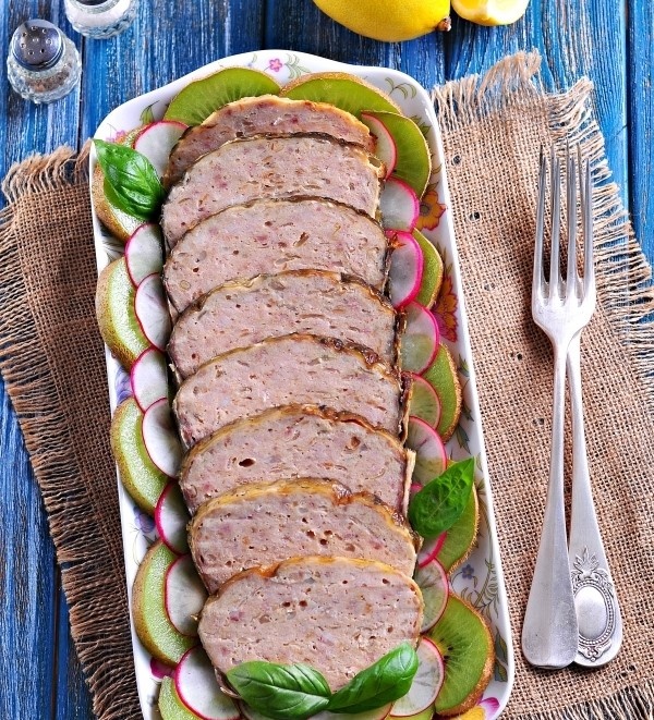 Фарш можно разделить на две части и сформировать большие котлеты, которые затем оборачиваются полосками кожуры рыбы. После этого котлеты помещаются в форму для запекания, накрываются фольгой и запекаются в духовке при температуре 170 градусов цельсия в течение полутора часов. После чего фольгу убирают и увеличивают температуру до 180 градусов, готовя еще полчаса.