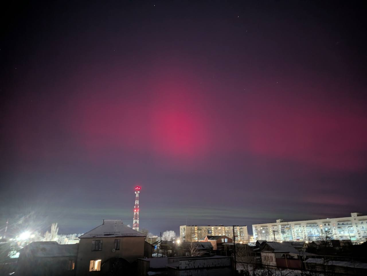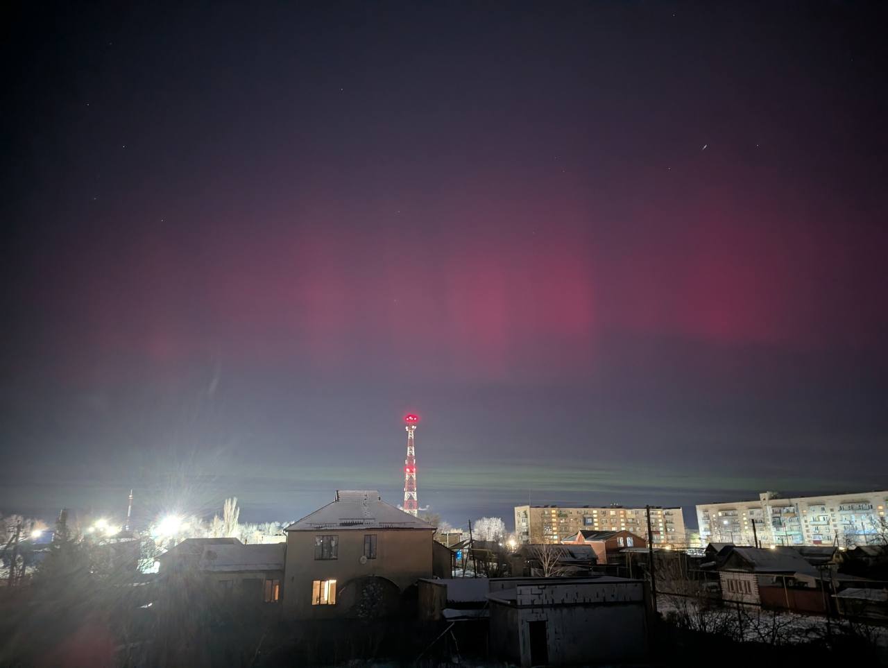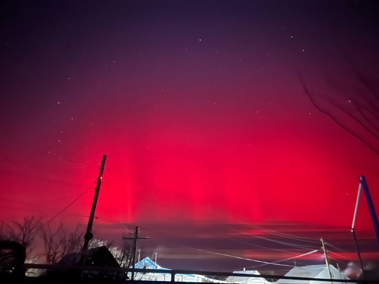 Вслед за этим над всей страной появились яркие полярные сияния, которые удалось сфотографировать в Астраханской области, включая Ахтубинск и Красноярский район.