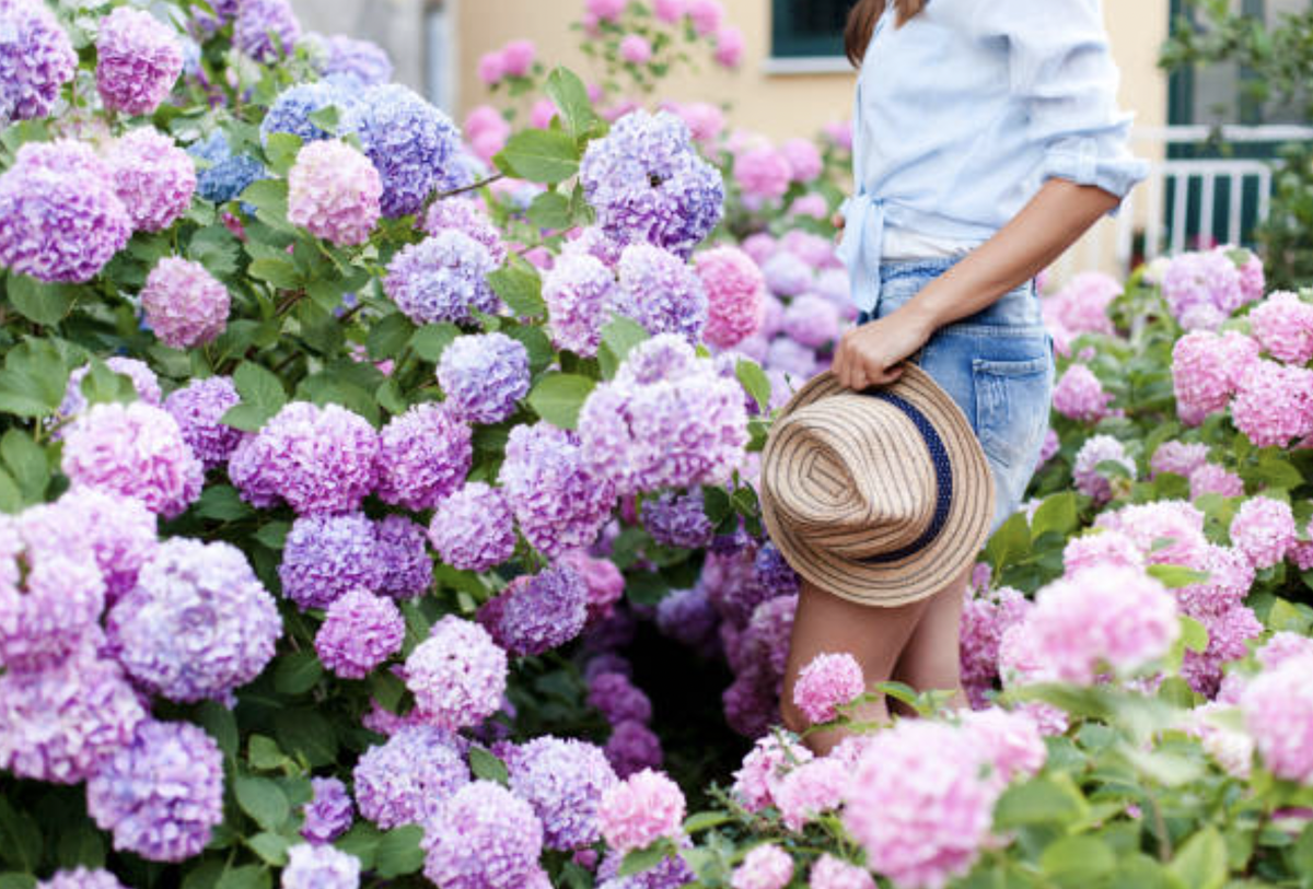Крупнолистная гортензия, больше известная как садовая, имеет множество сортов. Она не так высокая и раскидистая, как древовидная, но её цветы разнообразны: от розовых и голубых до белых. Цвета зависят от кислотности почвы, поэтому изменив её состав, можно значительно повлиять на расцветку.