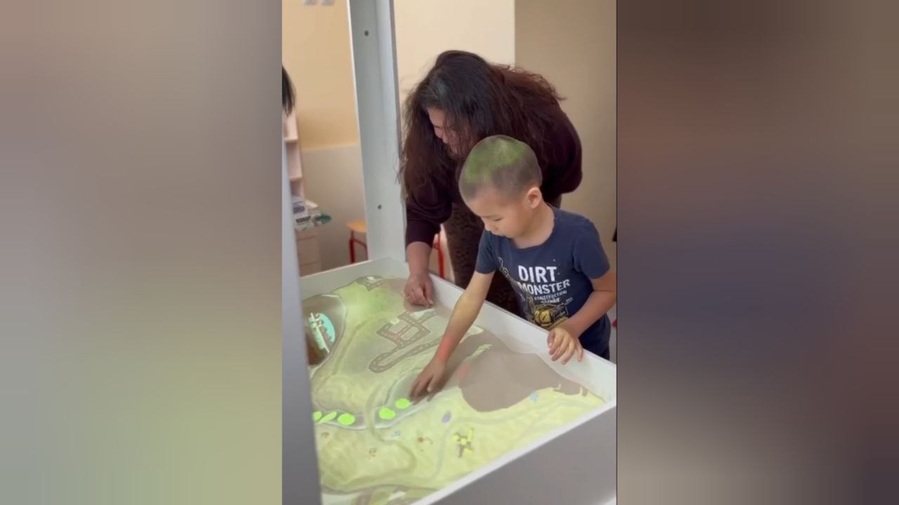 Кроме качественно выполненных отделочных работ, учреждение оснастили современным оборудованием. Так, в кабинете логопеда появился специальный световой стол с кинетическим песком и интерактивным логопедическим зеркалом.