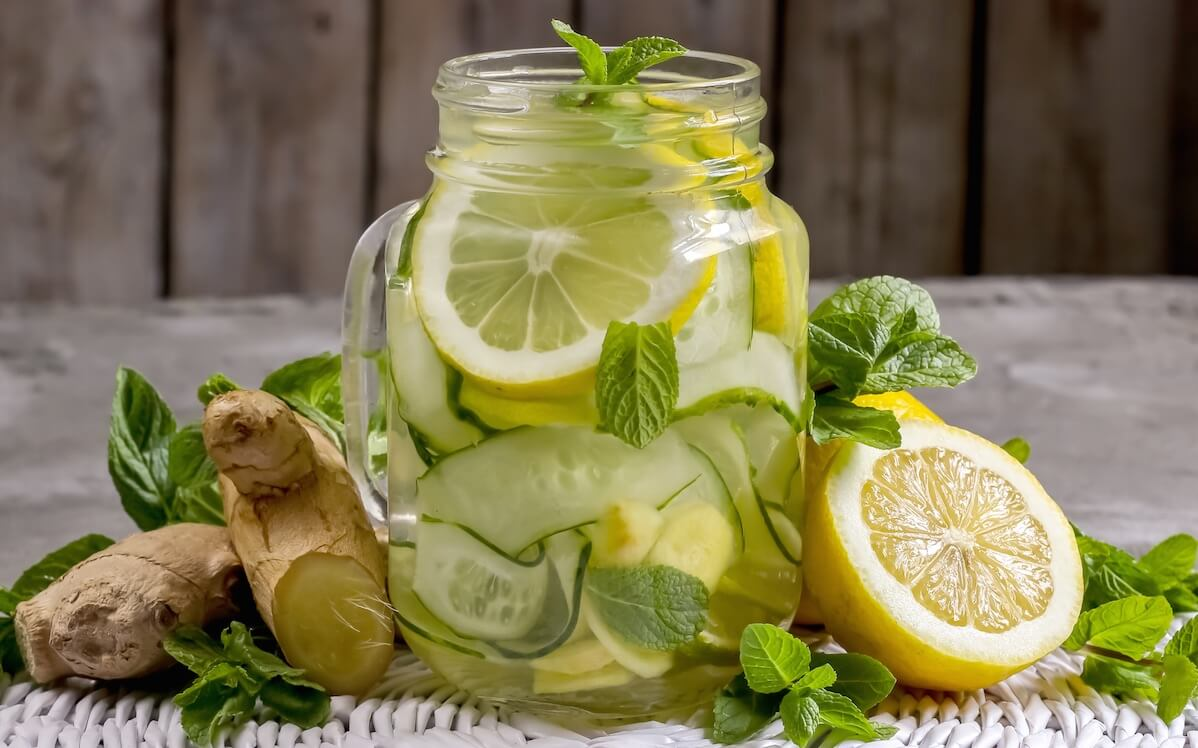 1. Огуречно-мятный лимонад с имбирем: Этот напиток великолепно утоляет жажду благодаря 96%-му содержанию воды в огурце и успокаивающим свойствам мяты. Имбирь улучшает кровообращение и помогает организму адаптироваться к жаре.