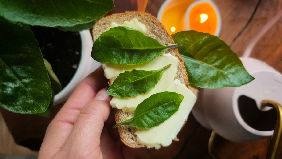 - Листья джинуры — это не только вкусный, но и полезный продукт с нейтральным вкусом, идеально подходящий для салатов и бутербродов.