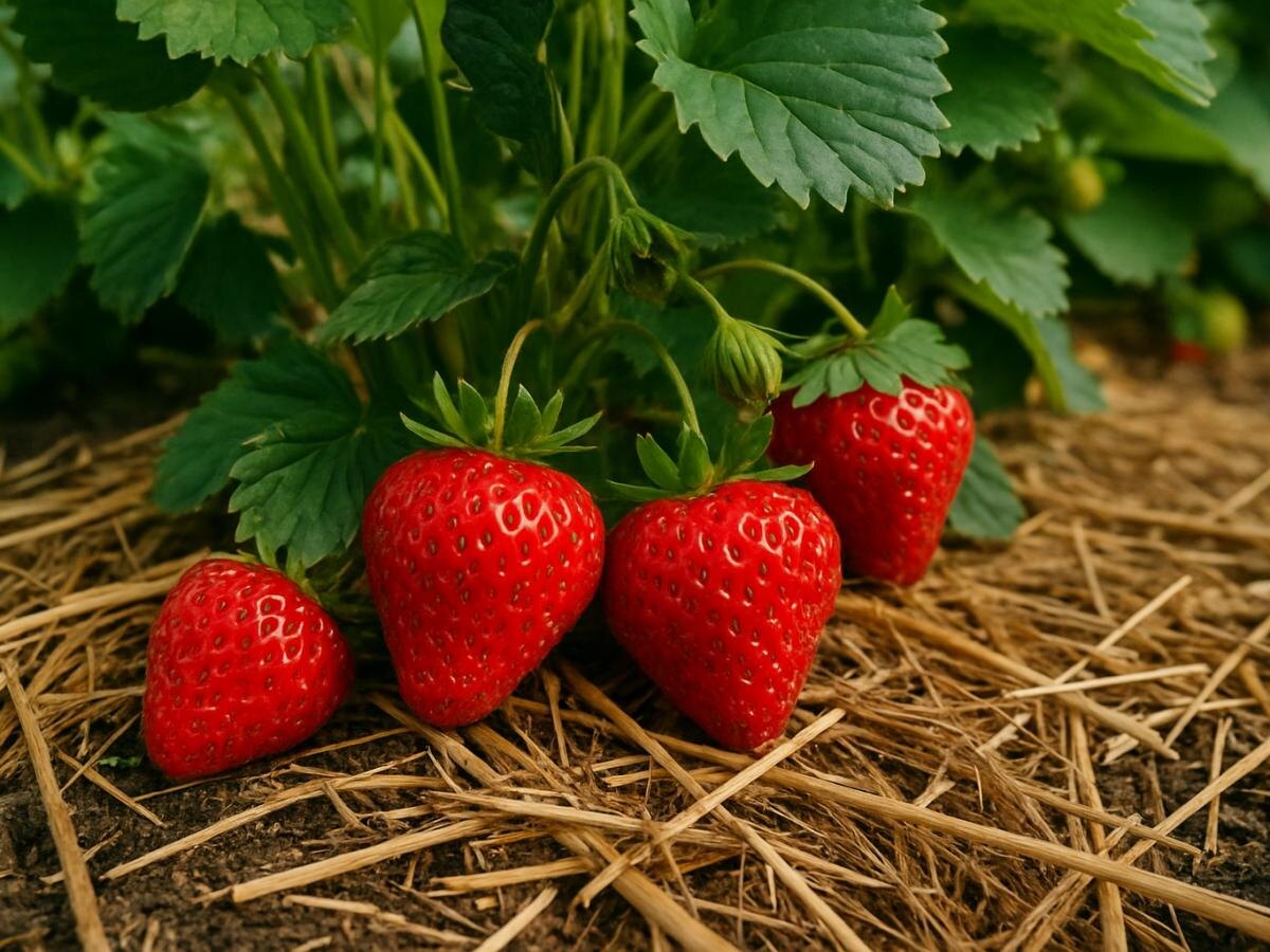 В период формирования цветочных почек клубнике необходимы фосфорно-калийные удобрения и комплексные осенние подкормки; азотные в этот период исключают, чтобы не провоцировать рост листвы и усов. При сухой осени проводят влагозарядковый полив, затем грядки мульчируют компостом, опилками или хвойной стружкой. Мульча сохраняет влагу и обеспечивает питание корням весной.