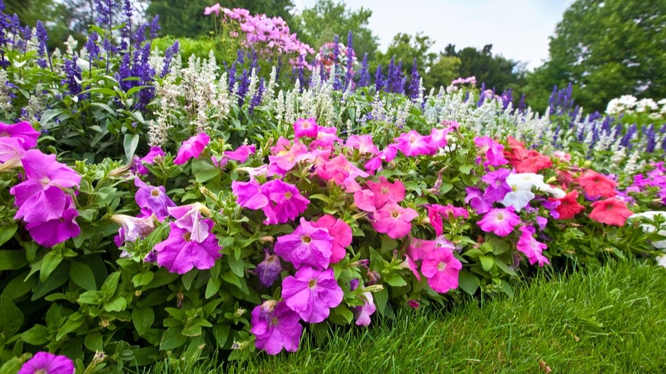 Первое — покупать готовую рассаду весной, чтобы сэкономить время. Второе — выбирать засухоустойчивые сорта: если нужна ежедневная поливка — исключаем. Неприхотливые сиреневые цветы должны спокойно переносить неделю без воды в жару. Третье — отдавать предпочтение многолетникам: посадил раз — и наслаждаешься годами. Однолетники выбираю с самосевом или устойчивостью к засухе.