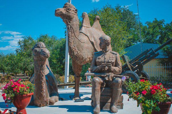 Удивительный подвиг астраханских верблюдов Машки и Мишки увековечен в памятнике «Мы победили! От Баскунчака до Берлина» в городе Ахтубинск.