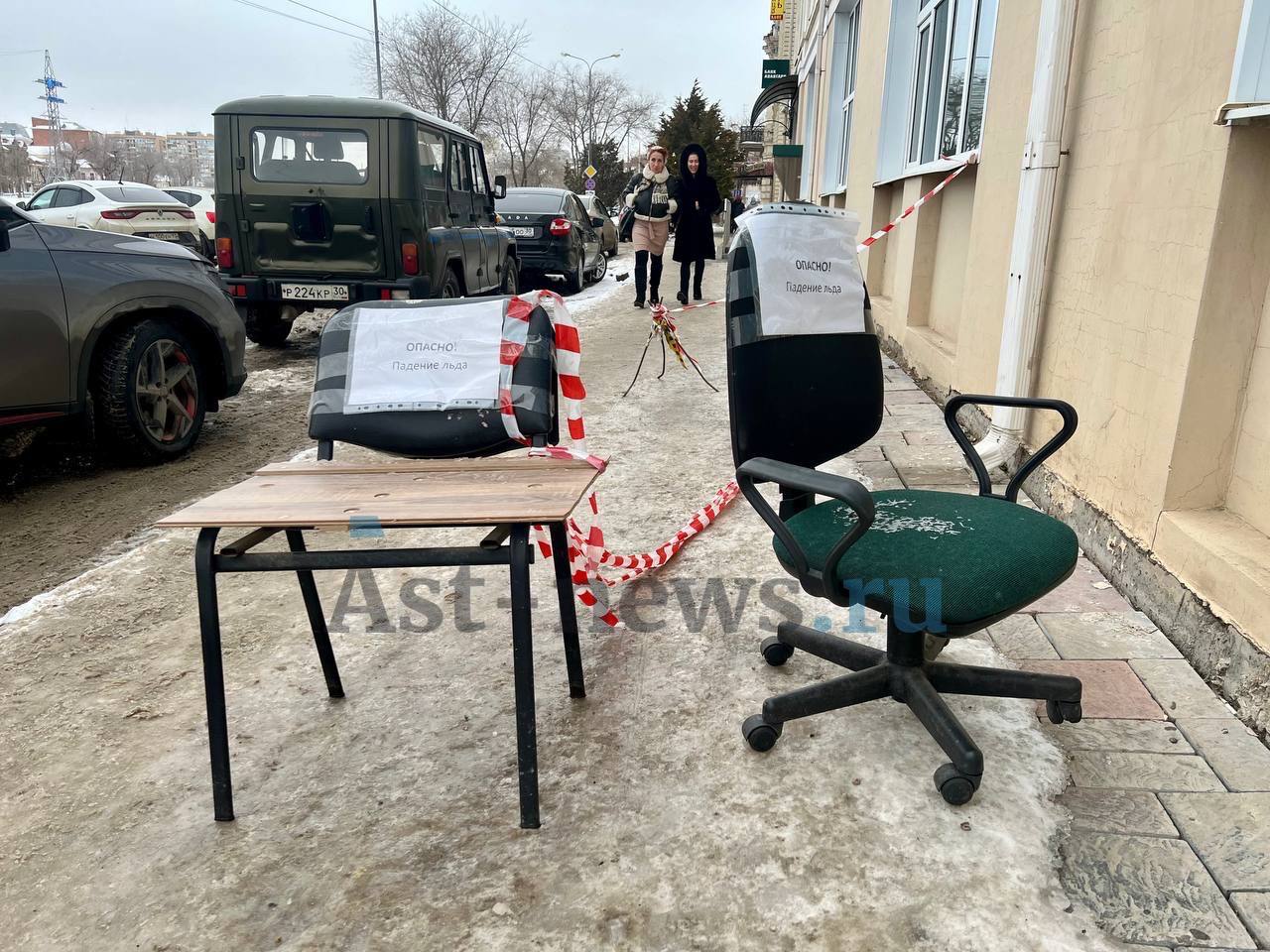 Социально ответственные граждане предупреждают астраханцев об опасности падения льда и сосулек на тротуары