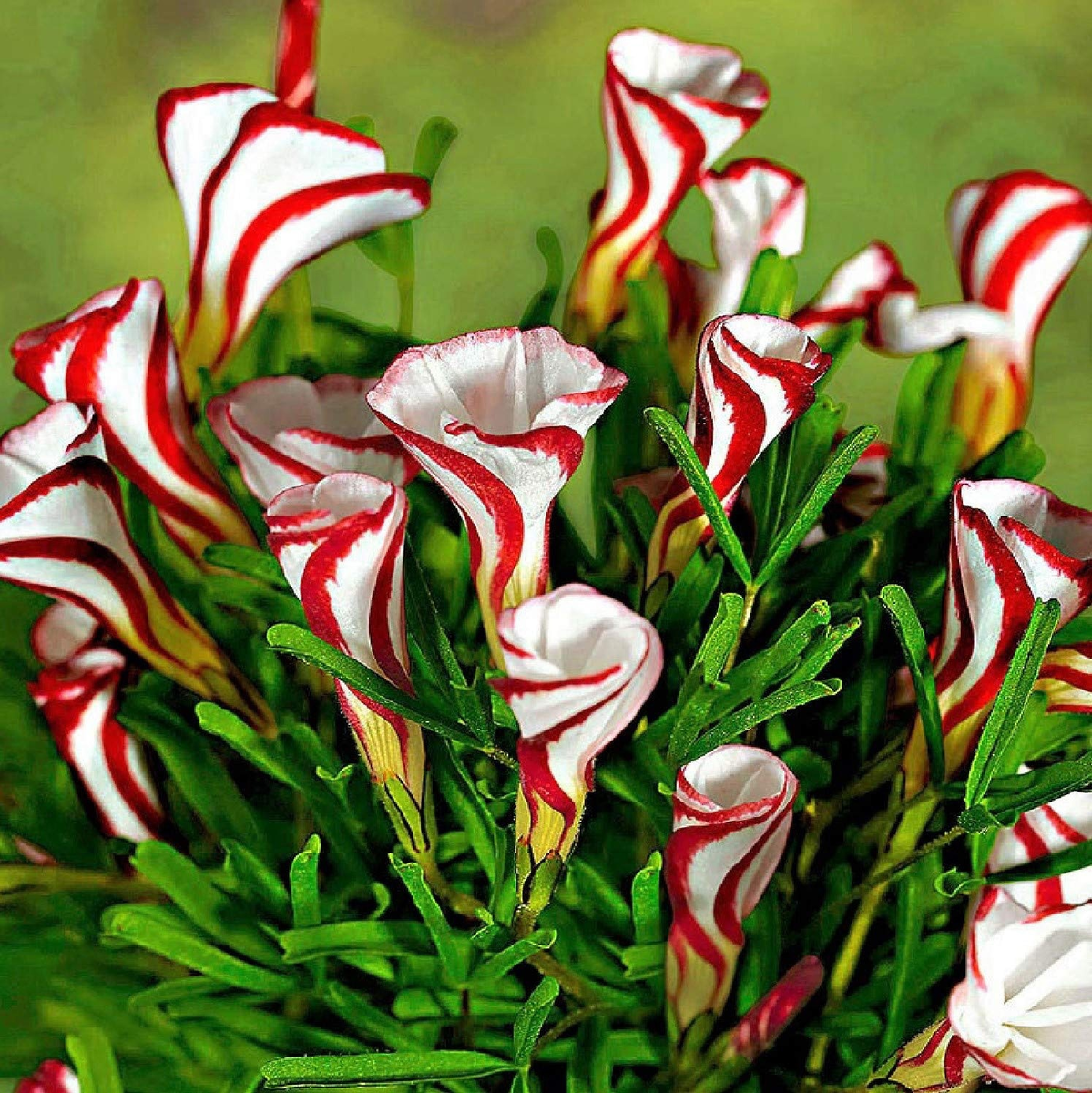Первое место в нашем списке занимает кислица пестроцветная, известная также как Oxalis versicolor. Это удивительное растение, будто бы усыпанное миниатюрными карамельками, чарует своим дизайном: красные и белые полосы на цветках закручиваются спиралью.