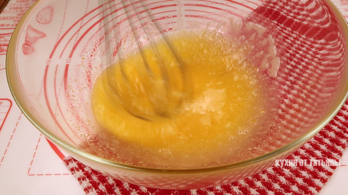 Вся магия начинается с того, что все ингредиенты должны быть комнатной температуры. В глубокую миску разбивается яйцо, добавляется ванильный сахар, щепотка соли и обычный сахар. Далее вливается растительное масло, и все ингредиенты тщательно перемешиваются венчиком до получения однородной массы.