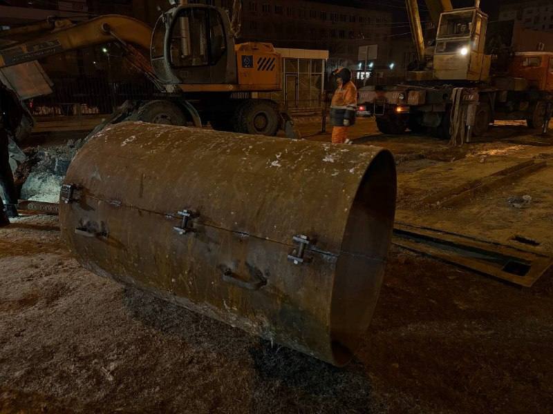 «Работы ведутся в условиях отрицательных температур и без отключения водоснабжения, что требует постоянной откачки воды для обеспечения доступа к месту расхождения швов трубопровода», — сообщили в коммунальной службе.