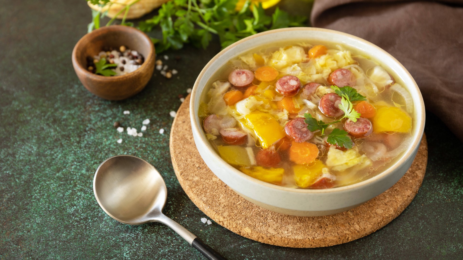 Эксперт отметил, что, например, в щи он всегда добавляет копченые свиные ребра или рульку. Понадобится 200-250 граммов на большую кастрюлю. Бульон при этом обязательно должен быть говяжий.
