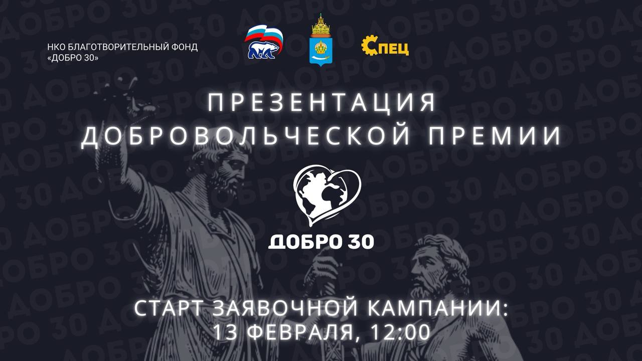 В Астраханской области стартует Премия «ДОБРО 30» для волонтеров, поддерживающих участников СВО