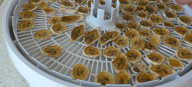 Начать следует с подготовки поддонов сушилки. Для этого возьмите салфетку, смочите её растительным маслом и тщательно протрите поверхности поддонов, чтобы избежать прилипания.Очистите бананы от кожуры и нарежьте их на кусочки толщиной не более одного сантиметра. Выложите подготовленные кусочки на поддоны, оставляя небольшие промежутки между ними для лучшей циркуляции воздуха.Включите электросушилку и установите температуру 55 градусов. Время сушки — 10 часов. Оптимально это делать на ночь, чтобы утром насладиться готовыми лакомствами. Однако стоит учесть, что некоторые модели шумят, что может помешать сну.Когда время сушки истечет, аккуратно снимите готовые бананы, пока они еще теплые. Это облегчит процесс, так как остывшие кусочки могут прилипнуть к решетке.Приятного аппетита и вкусных заготовок!