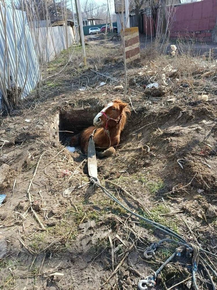 В Ленинском районе Астрахани лошадь провалилась в яму