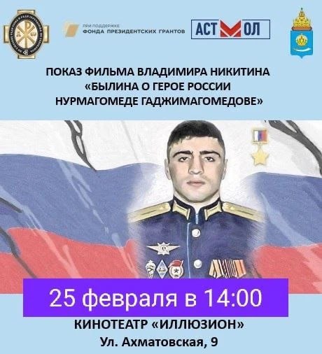 25 февраля в 14:00 в кинотеатре "Иллюзион" состоится показ фильма Владимира Никитина "Былина о Герое России" из цикла "Герои России - от Великой Отечественной до СВО" Императорского Православного Палестинского Общества".