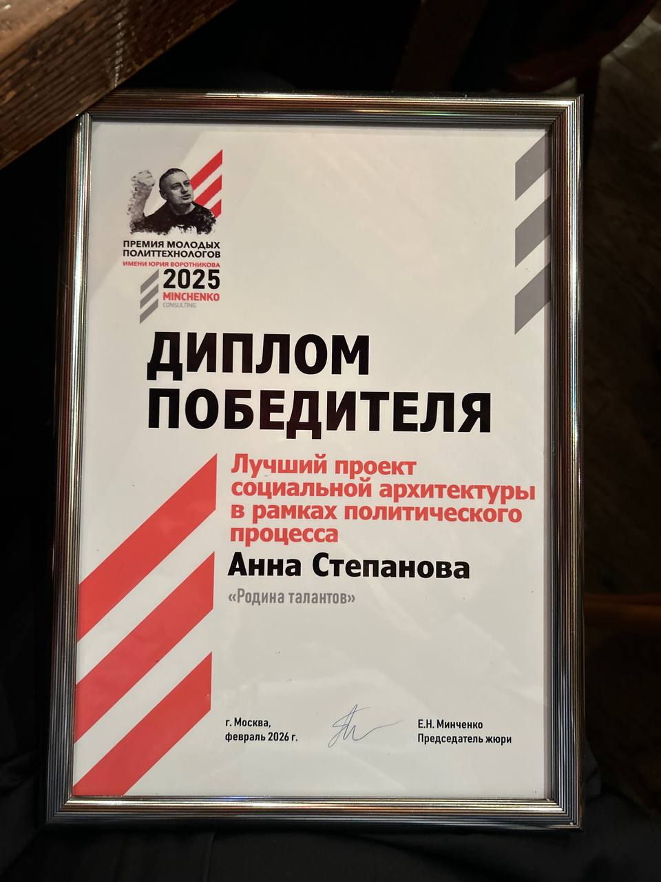 У нас отличная новость и серьезный повод для гордости. В Москве подвели итоги Премии Воротникова-2026. Наш проект стал победителем в номинации «Лучший проект социальной архитектуры в рамках политического процесса». Причем, в этом году данная номинация стала самой популярной: половина от всех заявок на Премию для молодых политтехнологов памяти Юрия Воротникова поступила именно в категорию социальной архитектуры.