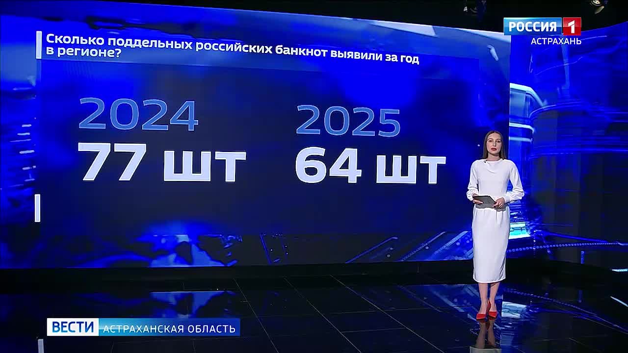 Что касается Астраханской области, то в 2025 году выявили и изъяли из оборота 64 поддельные российские банкноты. Подробнее расскажем в нашем сюжете на сайте ГТРК "Лотос".