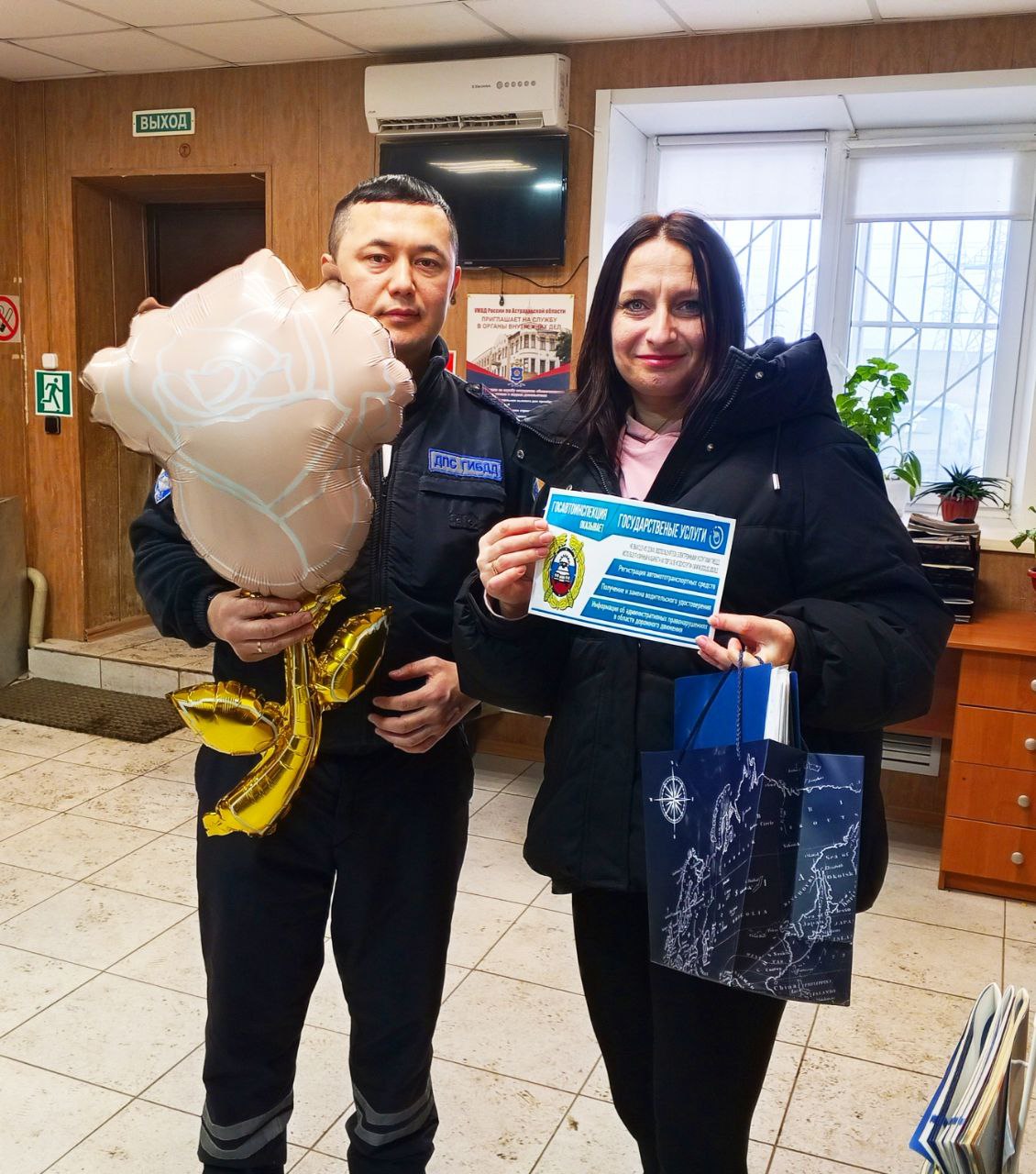 Милые автоледи получили поздравления от мужской половины Госавтоинспекции с наступающим праздником. Поздравляя с праздником, инспекторы, вместе с поздравительными шарами в виде цветов, вручали листовки с информацией о госуслугах, а также напоминали о возможностях и преимуществах получения государственных услуг в электронном виде.