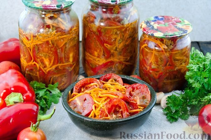 5. Помидоры с морковкой по-корейски: Этот острый и сочный салат с пикантным вкусом включает в себя помидоры, морковь и сладкий перец, маринованные с обжаренным луком и зеленью. Он не только порадует ваши вкусовые рецепторы, но и станет изюминкой зимнего стола.