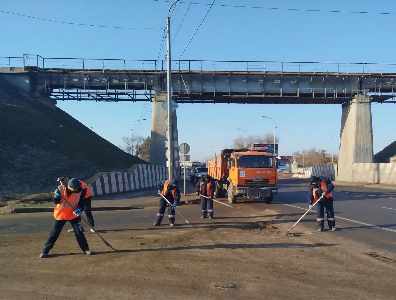 Сегодня коммунальные службы приступили к уборке на Новом мосту: мыли дорожное ограждение, собирали и вывозили наносной грунт. После зимы работы здесь, как и везде, много. Коммунальщики будут очищать мост несколько дней.