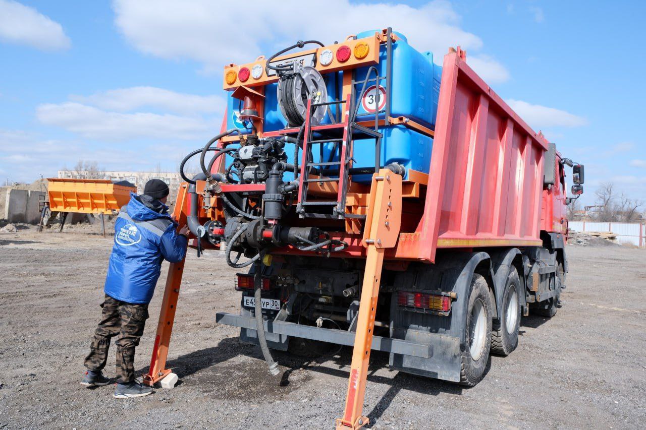 Кроме того, приступили к сезонному переоборудованию спецтехники: снегоотвалы и емкости для реагентов меняем на поливомоечные установки.