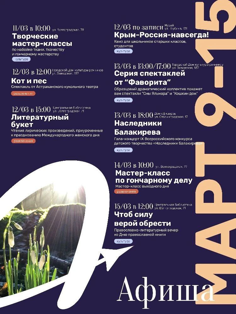 Афиша мероприятий на 13–15 марта