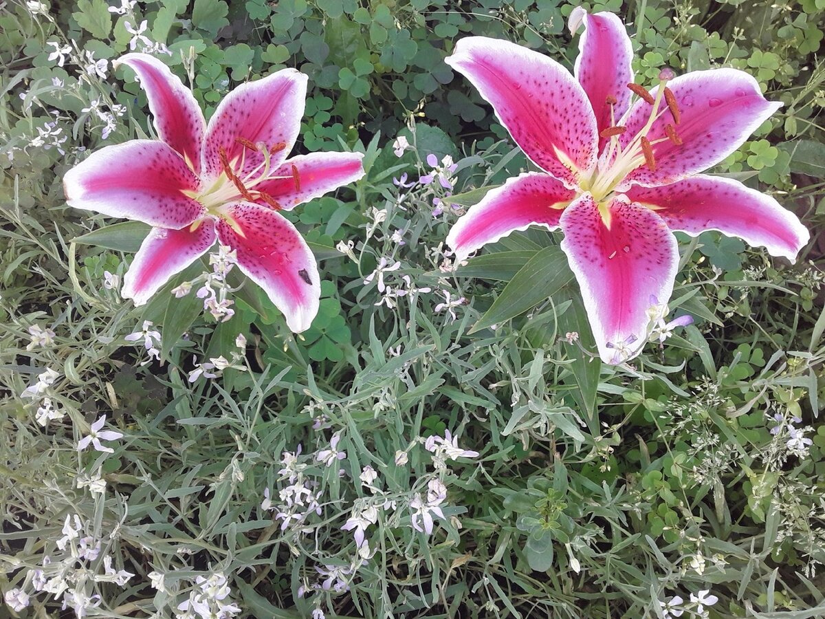 Минувшей весной были приобретены несколько сортов махровых восточных лилий. Цвели они по-разному, и среди них можно увидеть как одиночные цветы, так и кисти бутонов. Ожидается, что результаты их цветения станут известны только через год. Скоро станет ясно, смогут ли эти новые сорта занять достойное место в саду.