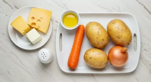 Приготовление этого супа проще простого. Начните с подготовки: очистите и нарежьте все ингредиенты, чтобы вам ничего не мешало в процессе. Мелко нарежьте лук и нарежьте картофель крупнее, чтобы он не развалился. Морковь лучше натереть на крупной терке, чтобы она раскрыла свой вкус во время обжарки.