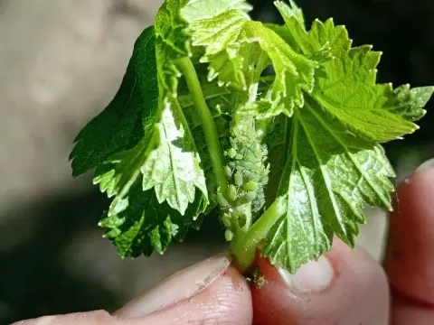 Тля – это опасный враг для растений, активно поедающий соки и ослабляющий кусты. На данной стадии роста смородина особенно уязвима, что может привести к серьезному ущербу и снижению урожая в следующем году.