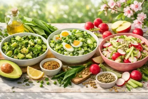 С приходом весны за окном нас радует тепло и солнечные дни, и пробуждается желание порадовать себя чем-то свежим и легким. Устали от зимнего меню? Вот три ярких салата, которые можно приготовить всего за 15 минут и которые обязательно порадуют глаз и вкус.