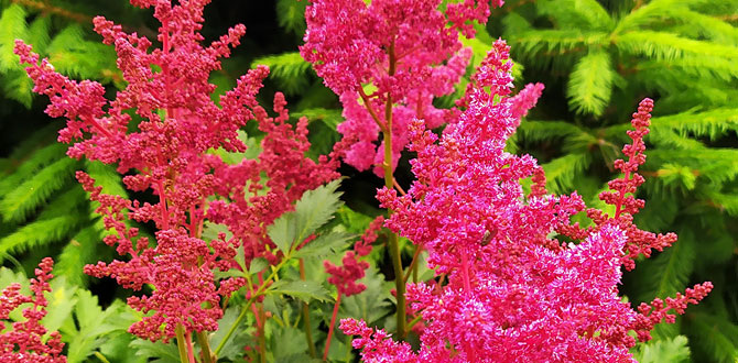 Астильбы — это идеальные растения для тех, кто хочет украсить затененные и влажные места. Их пушистые метелки могут быть розовыми, красными или белыми и великолепно контрастируют с резными листочками. Главное условие для их успешного роста — постоянно влажная почва. Астильбы эффектно смотрятся в групповых посадках, особенно в ряд.
