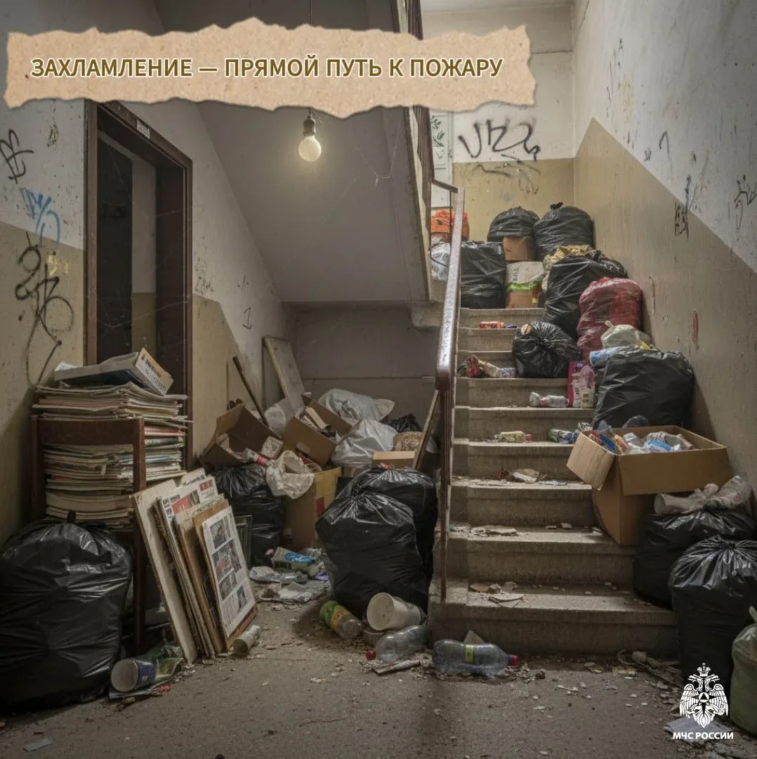 Нередко из-за захламления мусором путей эвакуации возникают пожары. Скопление горючих материалов ускоряет распространение огня, а загромождённые проходы мешают людям безопасно покинуть здание и затрудняют работу пожарных. Так, с начала года уже зафиксировано 11 пожаров в многоквартирных жилых домах, причиной которых являются складируемые вещи в подъездах.