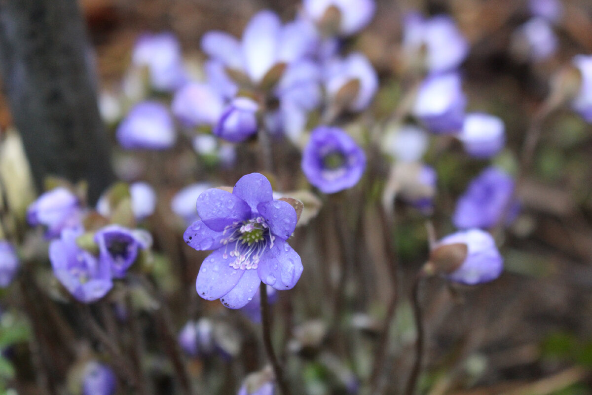 Несмотря на капризы апреля и обилие дождей, сад Светланы Ворониной и Маргариты Барбухатти демонстрирует свою красоту и разнообразие. В этот дождливый день печеночницы, хотя и не спешат полностью раскрыться, создают целые поляны с различными оттенками — голубыми, белыми, розовыми и сиреневыми. Главные герои этого весеннего спектакля — благородные печеночницы и ранние трансильванские сорта, среди которых особенно выделяется нежно-розовая "Schwanensee".
